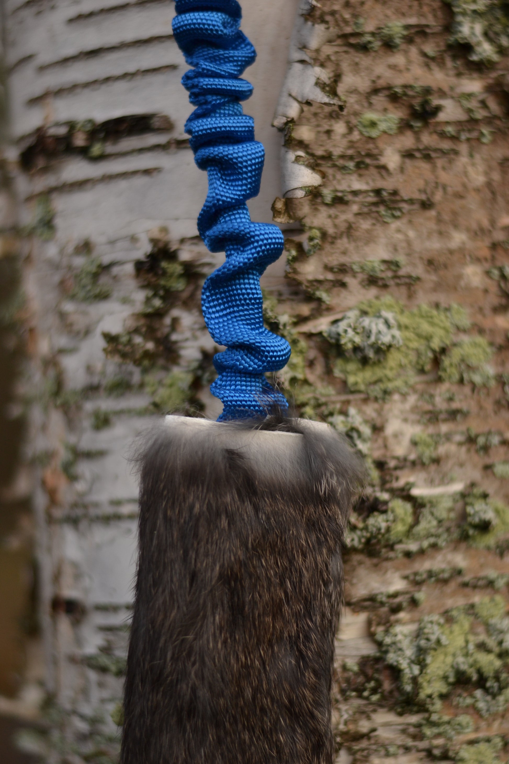 Fårskinnet på ca 10cm långt och 5cm brett & är förstärkt med brandslang.